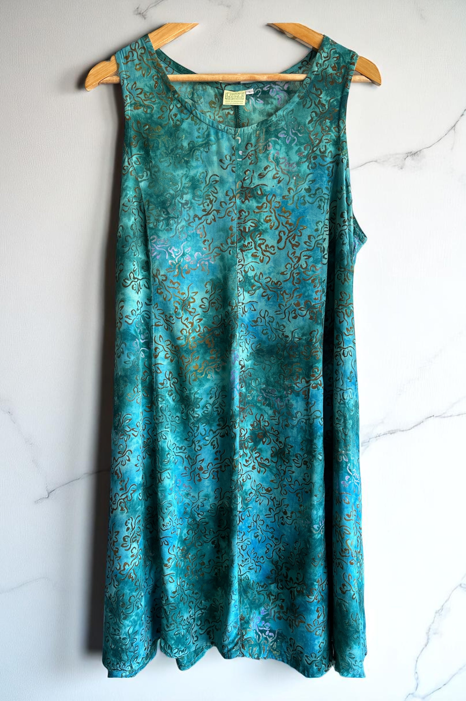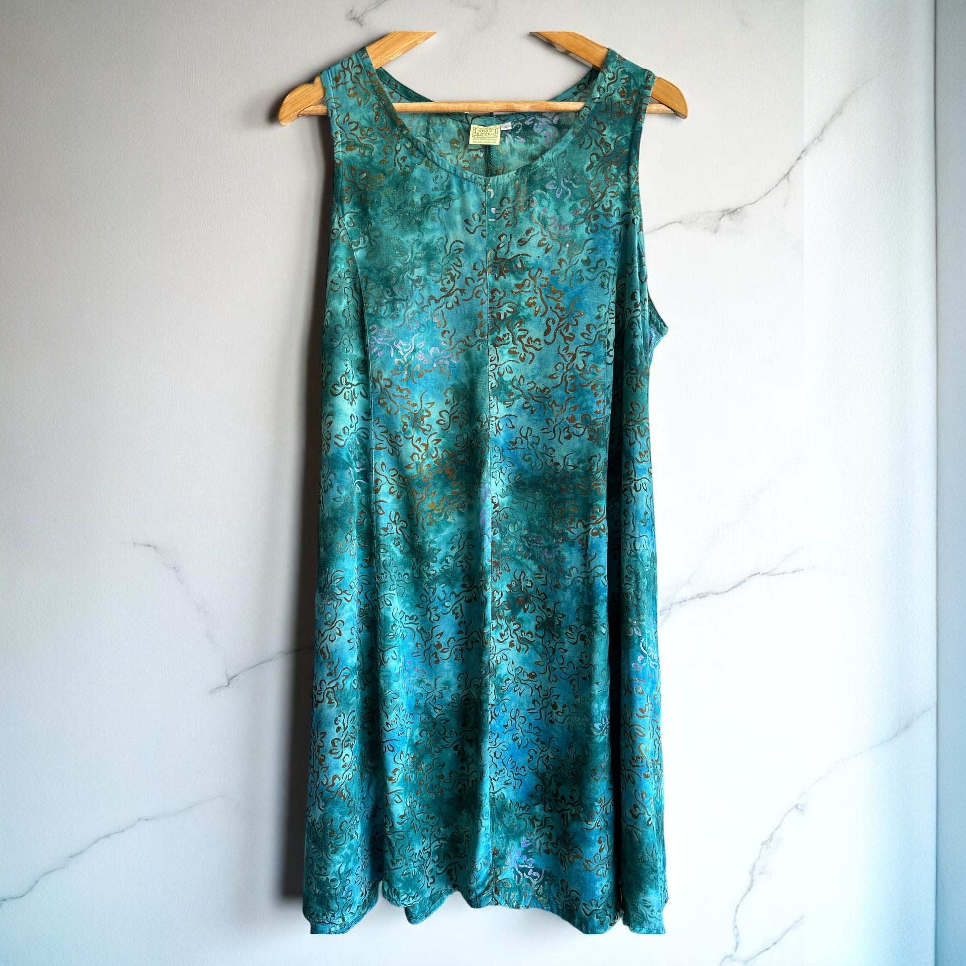 Our short tank dress knee length dress is simple in style however practical and versatile as well. The soft breathable batiked summer pond print brings a sense of calm and centeredness every time you wear it. In Bali, water and its' wonders are sacred and beautiful. Our simple yet elegant dress has pockets, is machine wash and comes in sizes xs-4xl . You will love the fit, comfort and feel of our tank dress.